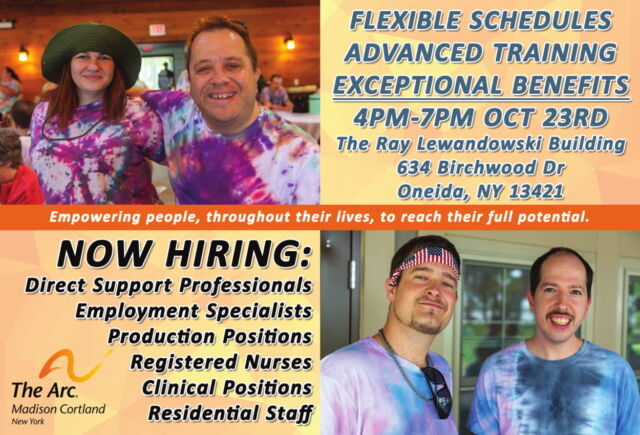 Job seekers will also have the opportunity to meet with disability service providers to learn about additional employment supports, “This will be a wonderful opportunity for jobseekers and employers alike to connect with service providers throughout the Utica-Rome area. We are thrilled to be hosting this event at Mohawk Valley Community College’s Rome Campus,” says Workforce Development Board Special Projects Director Mary Katherine A. Moylan.