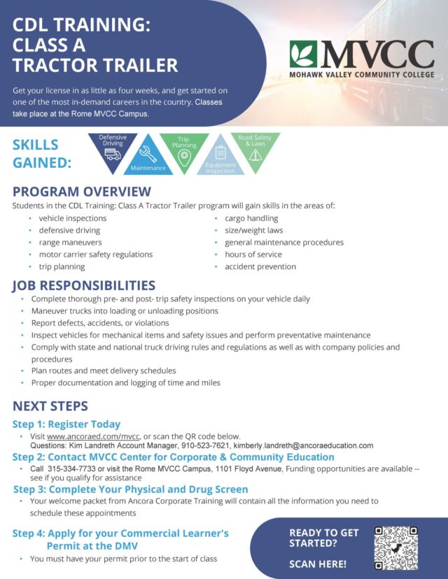 CDL Training - Get your license in as little as 4 weeks at MVCC!