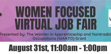 Our Women in Apprenticeships and Nontraditional Occupations (WANTO) virtual job fair will take place on Wednesday, August 31st from 11:00am to 1:00pm. We hope you will join us for this unique opportunity that connects women with local employers who are offering positions in nontraditional occupations.