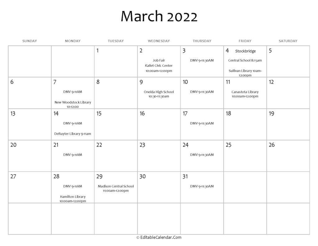 March 2022 calendar for schools and libraries