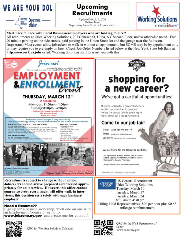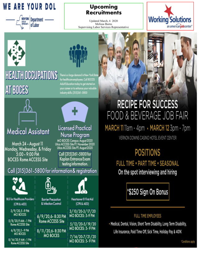 Interested candidates please mail a resume to Kristin Snyder-Branner, Director of Community Services Herkimer County Office of Mental Health, 201 N. Washington Street, Ste. 2470, Herkimer, NY 13350.
