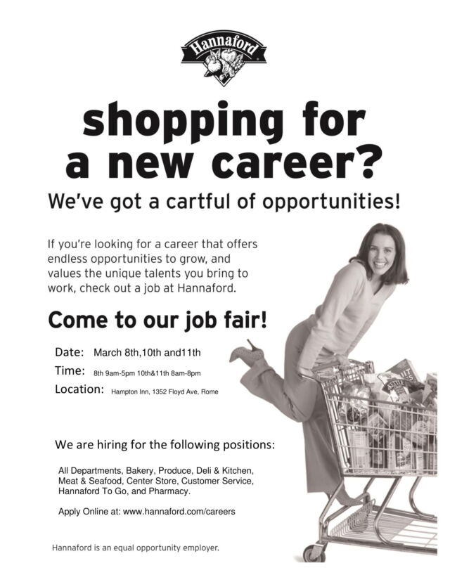 Hannaford is opening a new store in Rome and has several positions that need to be filled. They are holding hiring events on March 8th, 10th and 11th at the Hampton Inn in Rome. See the flyer below for more details!