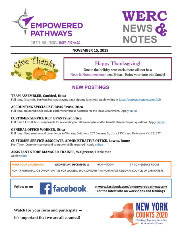 Check out Empowered Pathways News & Notes for some great opportunities and information!