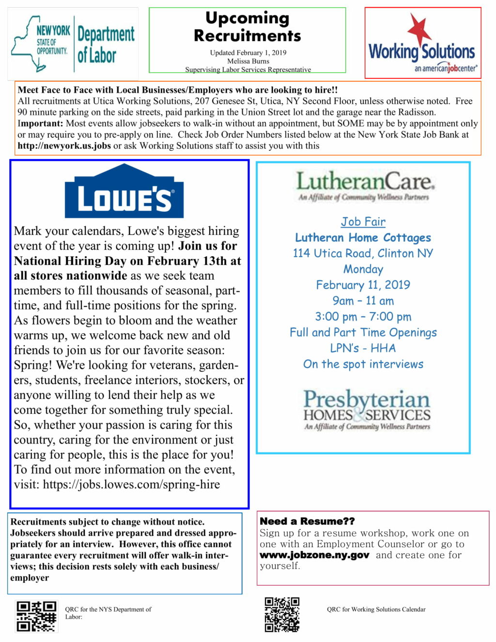 Job Title: National Day of Hiring City: Oneida, Rome, Utica, and Herkimer